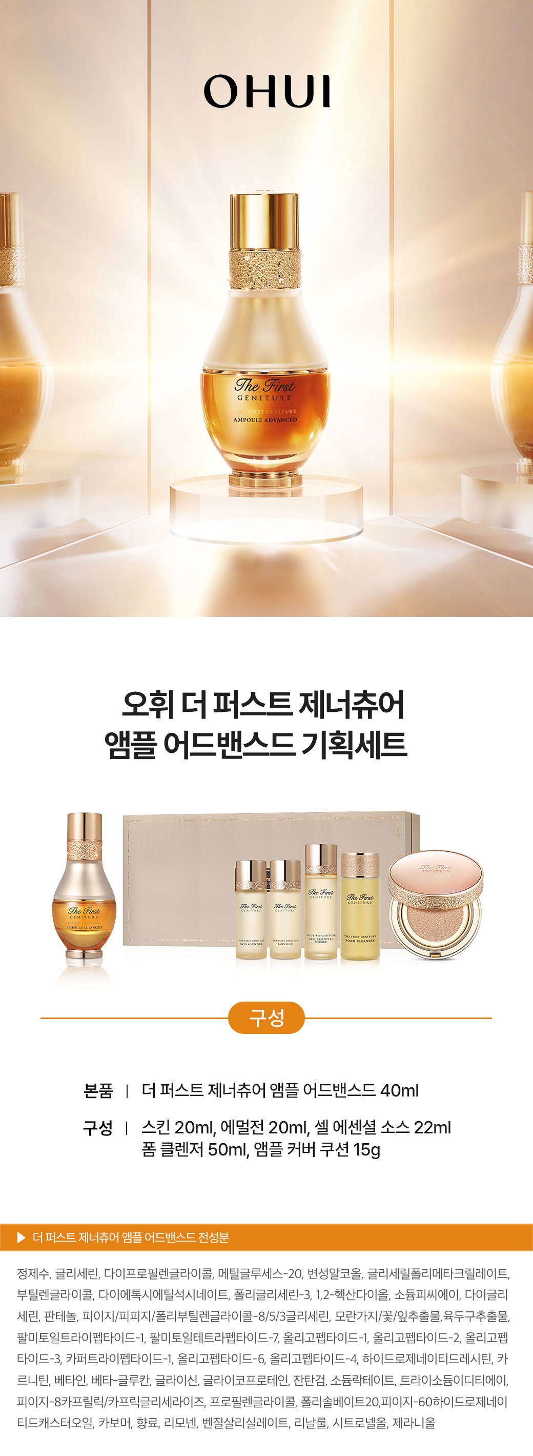 오휘 더 퍼스트 제너츄어 앰플 어드밴스드 기획 세트 + 미라클 모이스처 미니어처 기초화장품 3종 키트 요약정보 및 구매
