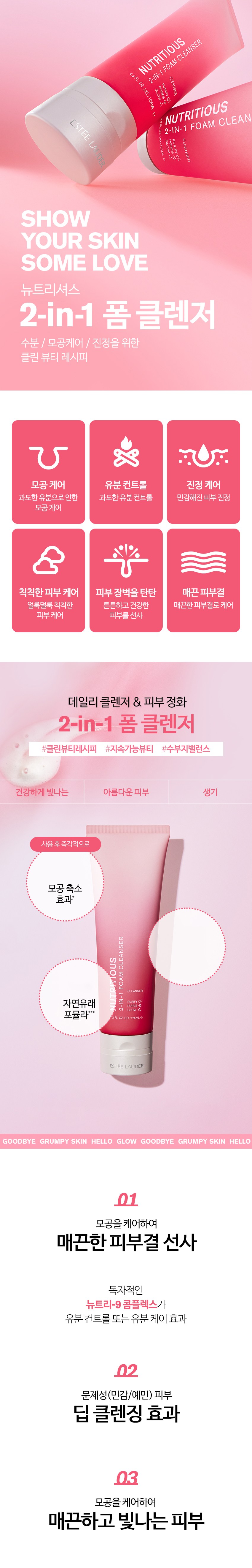 풍성한 거품과 함께 세정 후 상쾌한 마무리감을 느낄 수 있어요. 번들거림 없이 깔끔한 타입입니다.