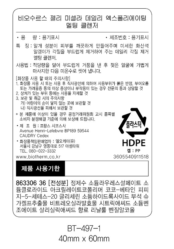 비오템 비오수르스 멜팅 각질 제거 젤 요약정보 및 구매
